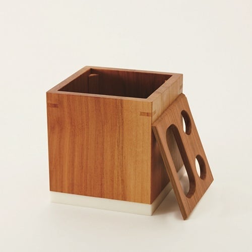 トイレや洗面カウンタ―向けに開発したコットンボックスと同じ高さの歯ブラシホルダーです。上のフタを外して掃除することができます。