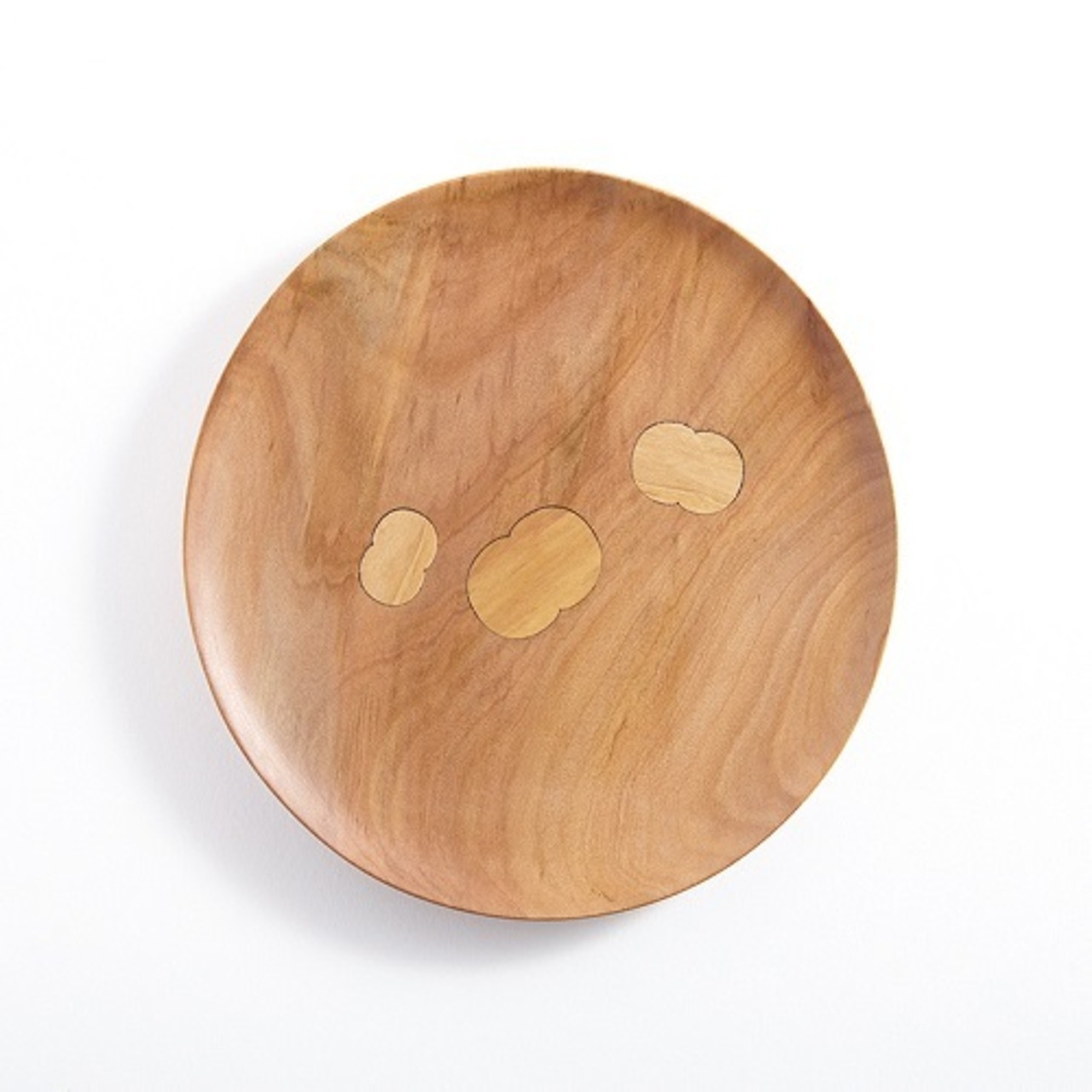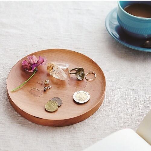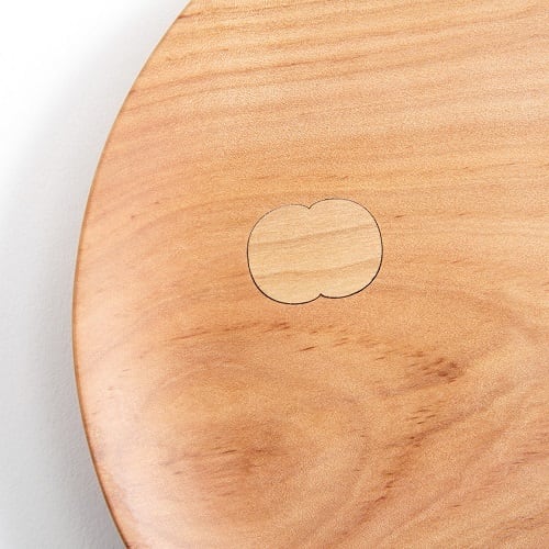 りんごの木には小さい節目も多く、それだけで廃材になることがあります。節埋め加工とは、そんな死節を取り除き埋め木をすることで、もう一度再生する技術です。通常は目立たないように同じ節の形にしますが、CHITOSEはりんごの形にすることでインテリアとしてのトレーを開発しました。1つとして同じデザインはありません。